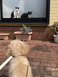 They were sitting in front of the window. They looked at me and I looked at them, too.
