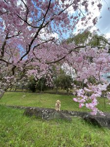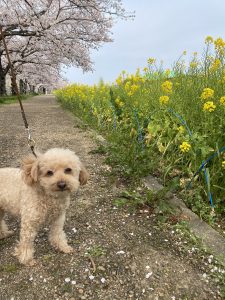 In this season, both cherry blossoms and 菜の花 bloom together.